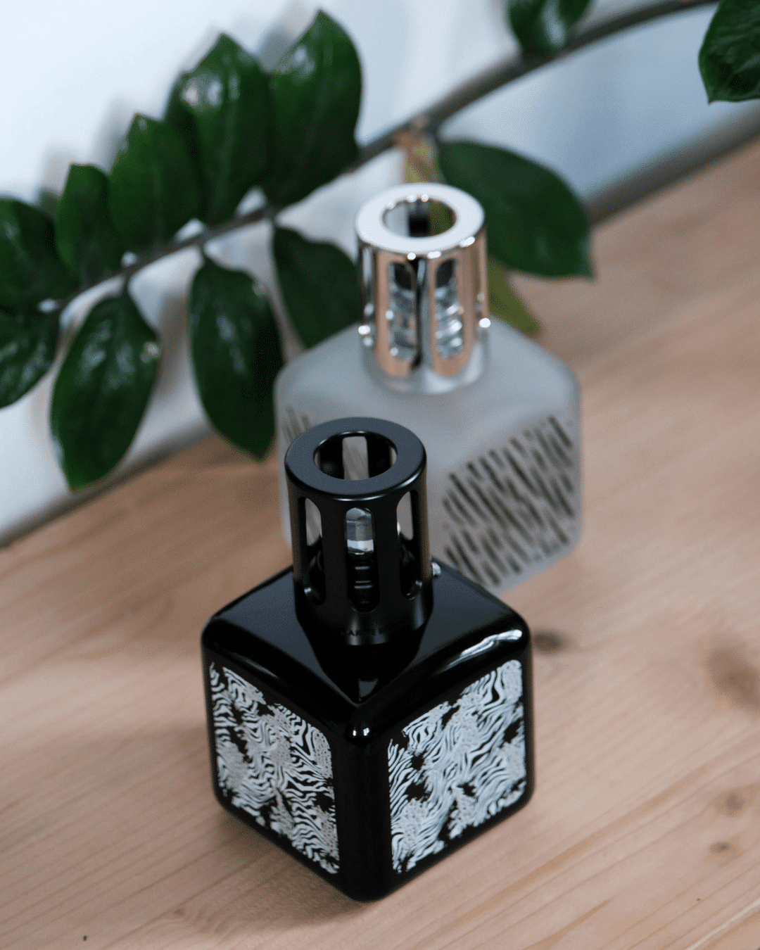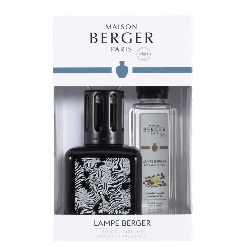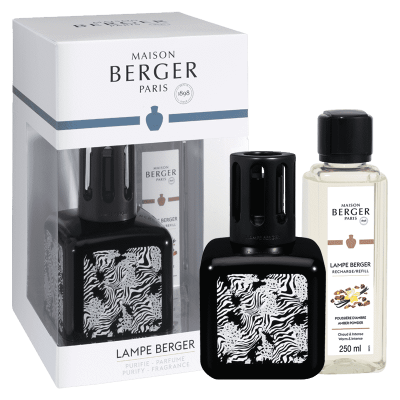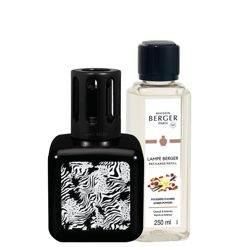 Se presenta en un cofre que incluye: 1 tapón normal, 1 tapón difusor, 1 mecha, 1 pequeño embudo y 1 recarga para lámparas catalíticas con aroma Poussière d’Ambre 250 ml.