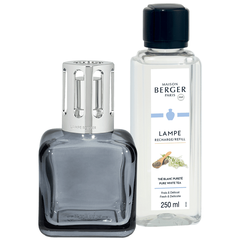 Se presenta en un cofre que incluye: 1 tapón normal, 1 tapón difusor, 1 mecha, 1 pequeño embudo y 1 recarga para lámparas catalíticas Thé Blanc Pureté 250 ml.