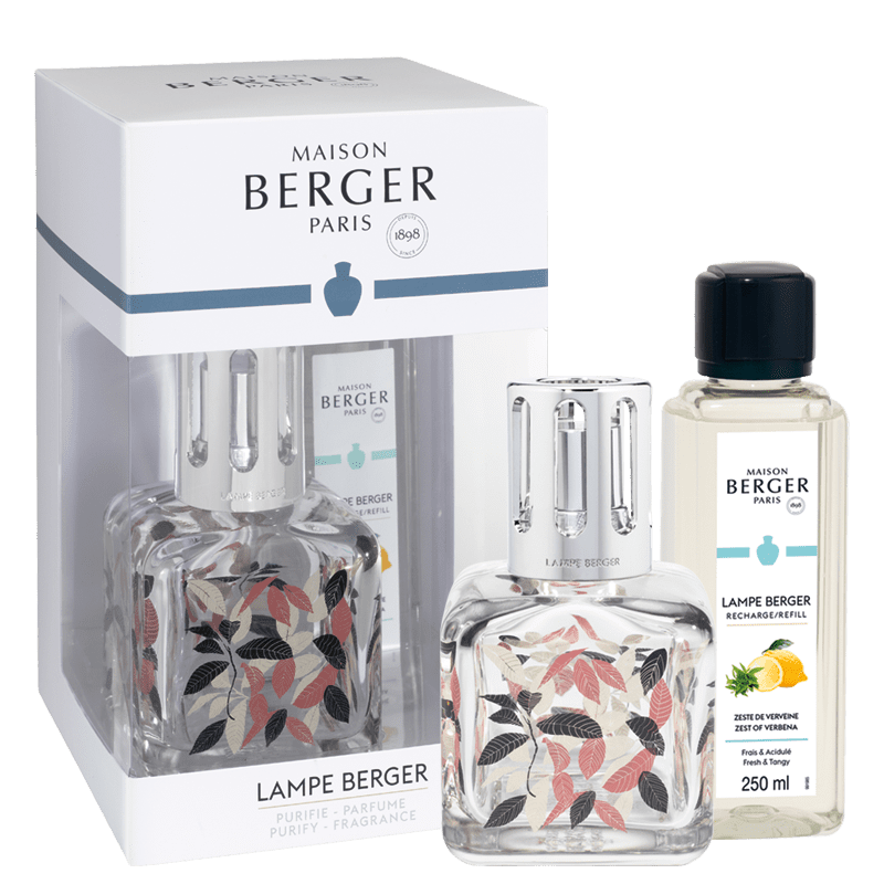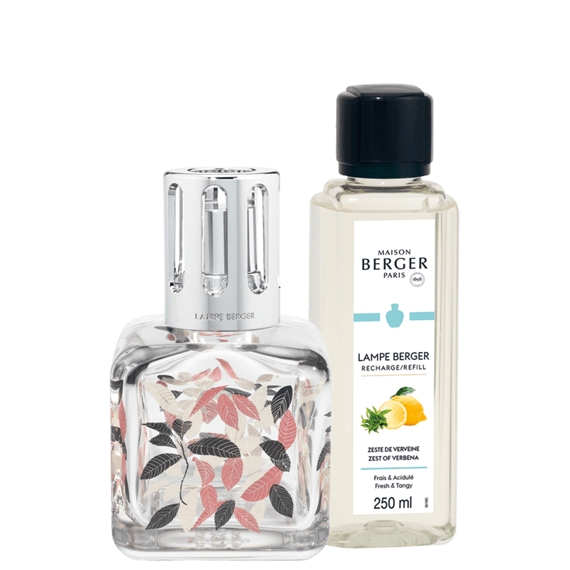 Se presenta en un cofre que incluye: 1 tapón normal, 1 tapón difusor, 1 mecha, 1 pequeño embudo y 1 recarga para lámparas catalíticas con aroma Zeste de Verveine 250 ml.