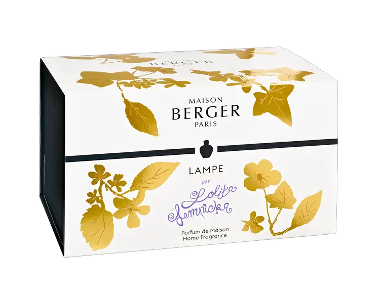 Se presenta en un cofre que incluye: 1 tapón normal, 1 tapón difusor, 1 mecha, 1 pequeño embudo y 1 recarga para lámparas catalíticas Lolita Lempicka 250 ml.