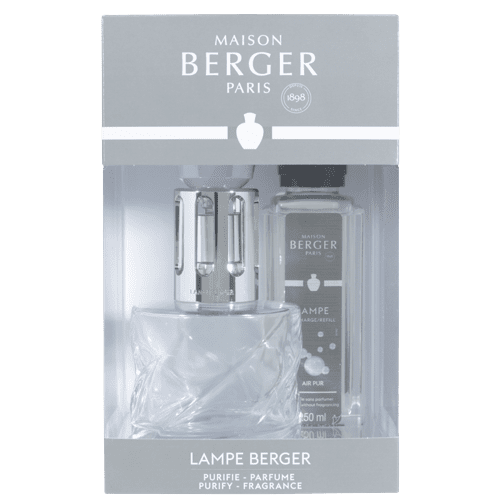 Se presenta en un cofre que incluye: 1 tapón normal, 1 tapón difusor, 1 mecha, 1 pequeño embudo y 1 recarga para lámparas catalíticas Air Pur (sin perfume) 250 ml.